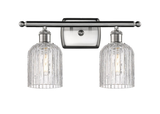 Salina - 2 Light - 16 inch - White Polished Chrome - Clear Spiral Fluted Shade - Bath Vanity LightDetails:Product Type: Two LightsFinish: White Pol...
