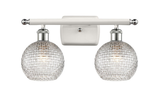 Athens - 2 Light - 16 inch - White Polished Chrome - Clear Basket Weave Shade - Bath Vanity LightDetails:Product Type: Two LightsFinish: White Poli...