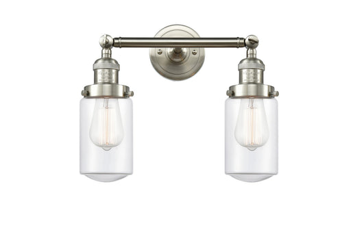Dover - 2 Light - 14 inch - Brushed Satin Nickel - Clear Shade - Bath Vanity LightDetails:Product Type: Two LightsFinish: Brushed Satin NickelShade...
