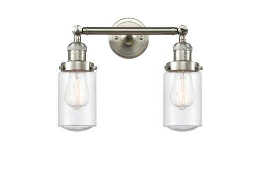 Dover - 2 Light - 14 inch - Brushed Satin Nickel - Seedy Shade - Bath Vanity LightDetails:Product Type: Two LightsFinish: Brushed Satin NickelShade...