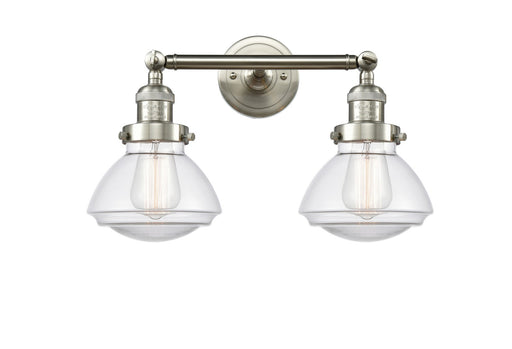 Colton - 2 Light - 16 inch - Brushed Satin Nickel - Clear Halophane Shade - Bath Vanity LightDetails:Product Type: Two LightsFinish: Brushed Satin ...