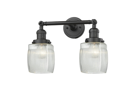 Colton - 2 Light - 16 inch - Oil Rubbed Bronze - Clear Halophane Shade - Bath Vanity LightDetails:Product Type: Two LightsFinish: Oil Rubbed Bronze...