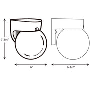 A black polycarbonate wall bracket featuring a white 6 inch acrylic globe. Adds modern flair to an outdoor space.
