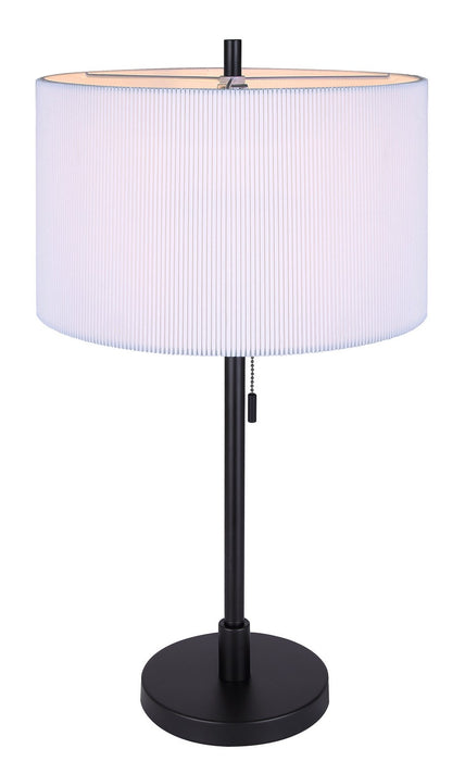Add a touch of modern elegance to your home with the CARMYNN 1-Light Table Lamp. Featuring a sleek matte black finish and a white ribbed fabric shade, this lamp combines contemporary, transitional, and modern design elements, making it a perfect accent piece for bedrooms, living rooms, and home offices. Designed for both style and functionality, the CARMYNN lamp accommodates a 60W Type A bulb (not included) to provide soft, inviting illumination. The on-off pull chain allows for effortless operation, while the sturdy 13-inch wide base ensures stability. Measuring 24.25 inches in height, this versatile lamp enhances any tabletop, nightstand, or desk with a refined yet practical lighting solution. Perfect for ambient lighting or task lighting, the CARMYNN table lamp blends seamlessly with a variety of interior decor styles, bringing timeless sophistication to your space.