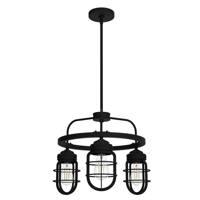 The industrial caged design of the Starklake chandelier is an inspiring addition to your office or any room. Highlight your dining room or enahnce your island with this rustic stunner that is the icing on your room. The inventive design of this fixture will inspire and galvanize your ideas. Mix and match with other fixtures from this collection or from our ceiling fan designs.
