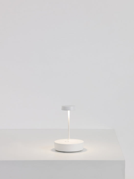 Customizable Table lamp Decorative shades sold separately Base offered in two heights-5.8"mini or 12.8" table lamp Battery lasts about 12 hours at full power Charging time is 6-8 hours Full range touch dimmer control Induction charging base and plug included Painted finishes are Indoor/outdoor use IP65 rating protection Glossy metallic finishes are indoor use only 3W LED 100-240V 182 lm 2700K 5Vdc max 1A