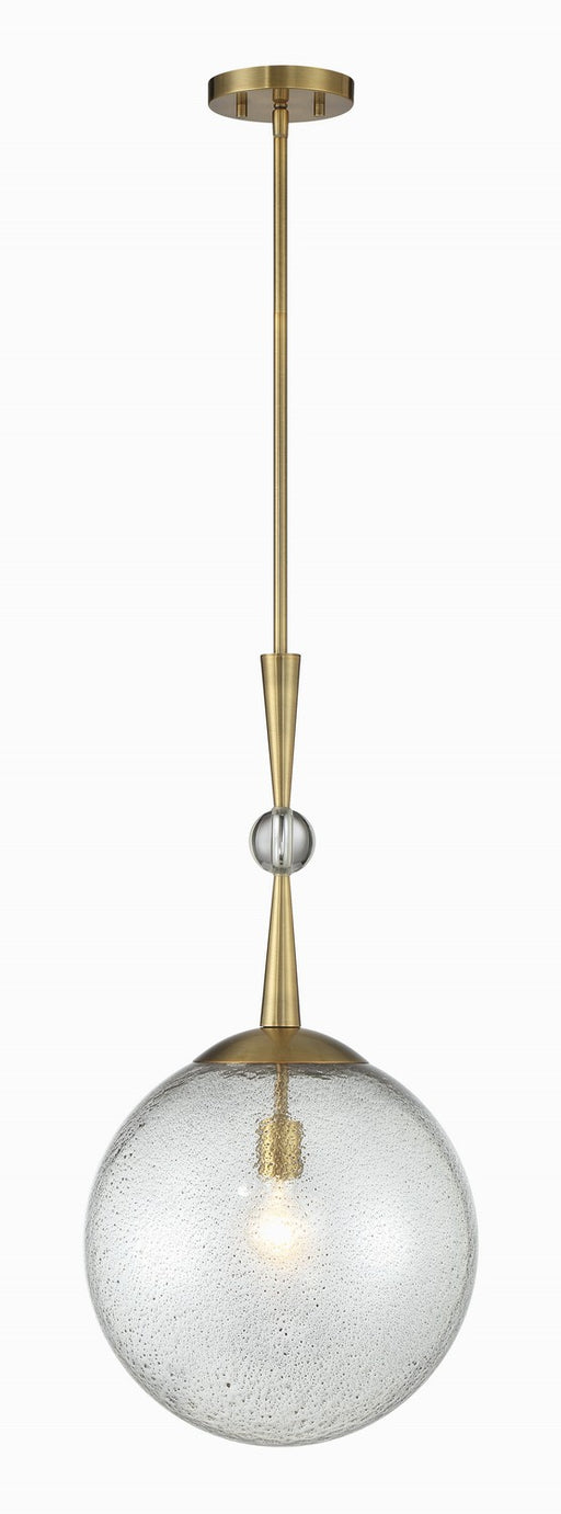 Populuxe 1-Light Oxidized Aged Brass Mini Pendant with Clear Volcanic Glass ShadeDetails:Product Type: Glass DownFinish: Oxidized Aged BrassShade: ...