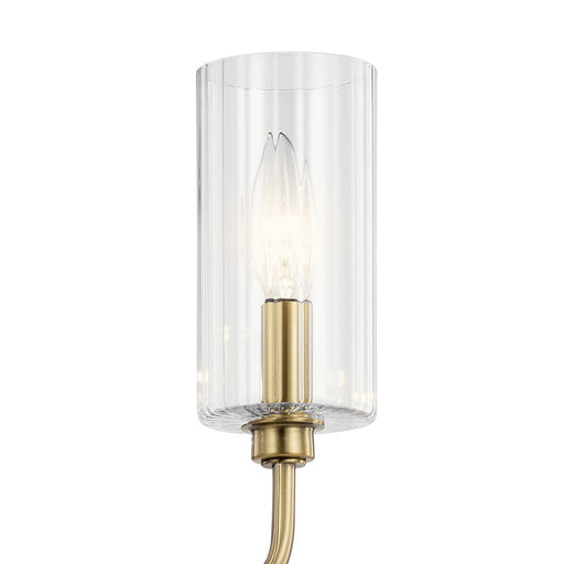 The Kimrose 11 light linear chandelier is an Art Deco masterpiece. Its geometric shapes take center stage in a gorgeous Brushed Natural Brass finis...