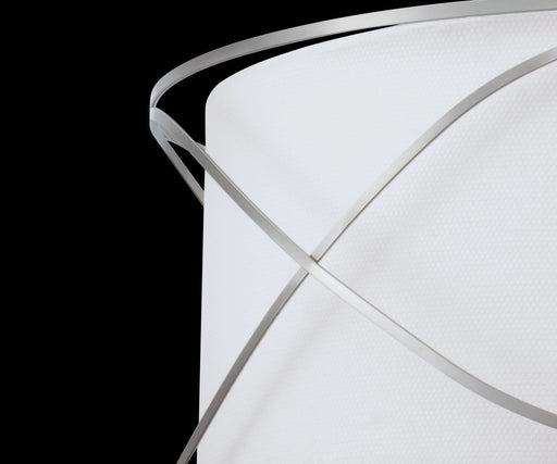 White stretched cotton shade with burnished nickel steel frameDetails:Product Type: PocketFinish: Brushed NickelShade: White FabricMeasurements:Wid...