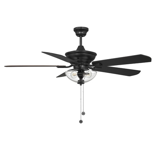This 52" ceiling fan brings a polished look to any room with its matte black finish and clear glass light kit. The blades are finished in black on ...