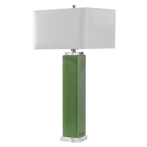 Finished In A Striking Tropical Green Glaze, This Ceramic Table Lamp Is Accented By Thick Crystal Ornaments And Brushed Nickel Accents. The Square ...