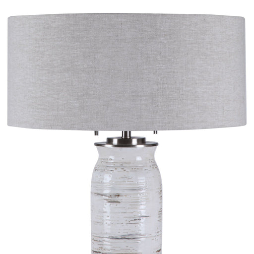 Inspired By The Bark Of A Birch Tree, This Table Lamp Features A Ceramic Base Finished In Off-white With Rust-colored Accents And Noticeable Textur...
