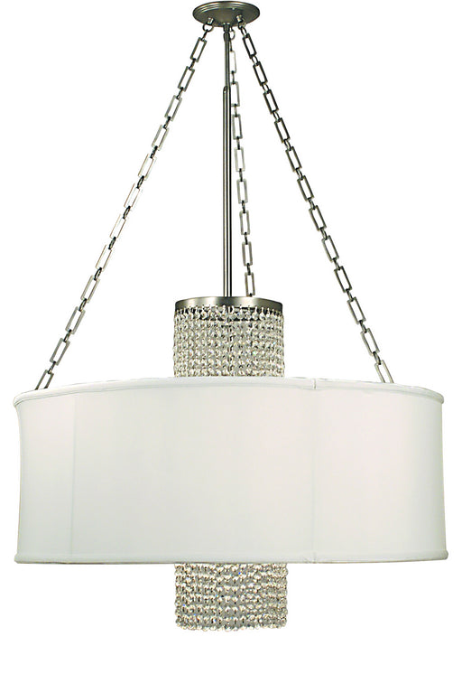 View full detailsFramburg 1958 PS/SWH Four Light Chandelier, Polished Silver w/White Sheer Shade