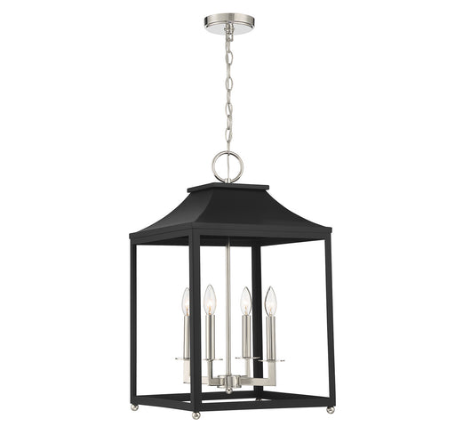 Crisp and traditional lantern style lighting is given an update in this Meridian 4-light pendant, which features a matte black finish accentuated b...