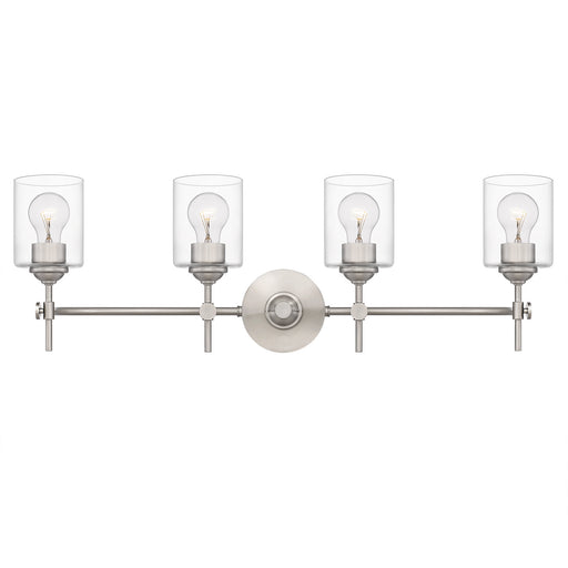 `Details:Product Type: Four LightsFinish: Brushed NickelShade: Clear GlassRooms: BathroomMeasurements:Width / Dia: 31.25"Height: 10.00"Length: 6.00...