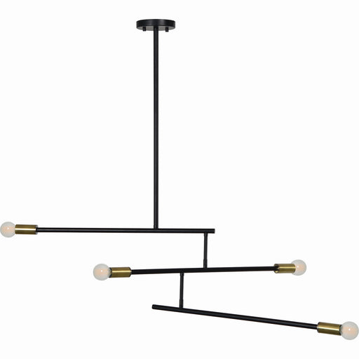The contemporary silhouette of this modern chandelier is a study in shape shifting style. The four-light fixture features a trio of matte black bat...