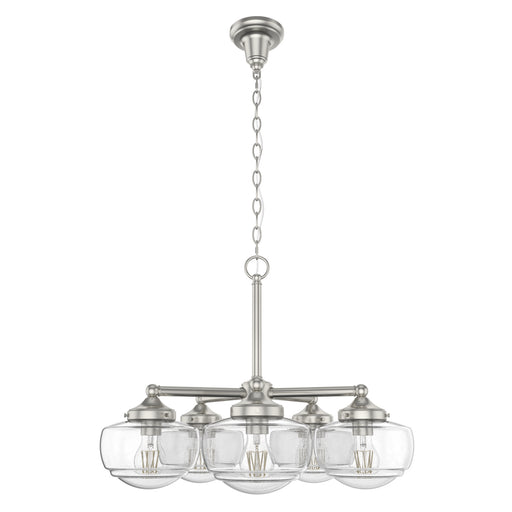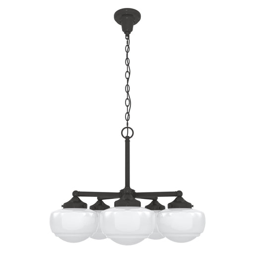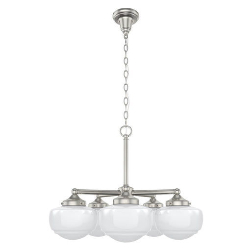 The Saddle Creek chandelier illustrates the contemporary design principle of better, not more. Five classic glass globesâavailable in cased white...