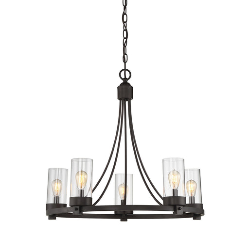 The sleek circular design of this 5-light chandelier showcases cylinders of clear glass and a versatile Oil Rubbed Bronze finish, giving you a look...