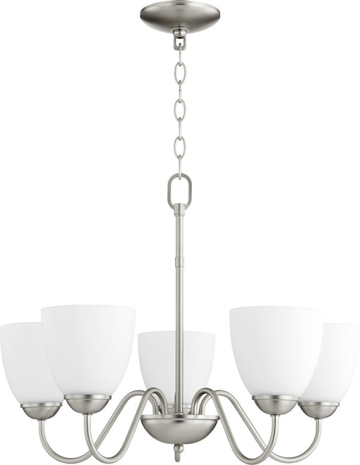View full detailsQuorum 6022-5-65 Five Light Chandelier, Satin Nickel