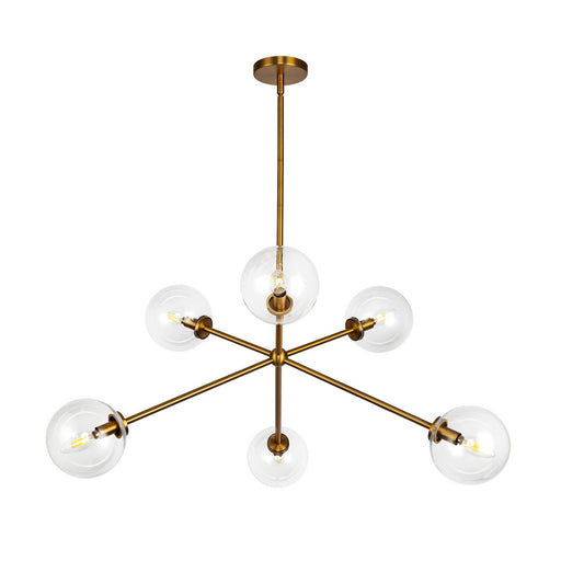 Alora CH309006NBCG Six Light Chandelier, Clear Glass/Natural Brass