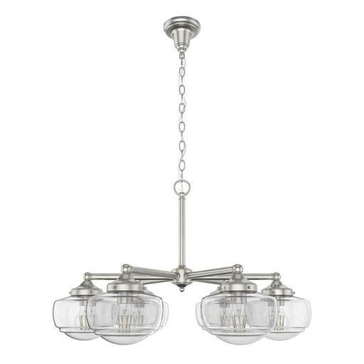 The Saddle Creek chandelier illustrates the contemporary design principle of better, not more. Six classic glass globesâavailable in cased white ...