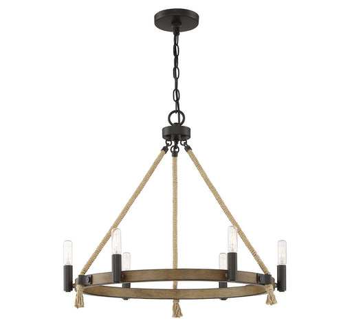There's a lot to love about this 6-light chandelier, from its wood-finished hoop studded with lights to the eye-catching rope accents and the Oil R...