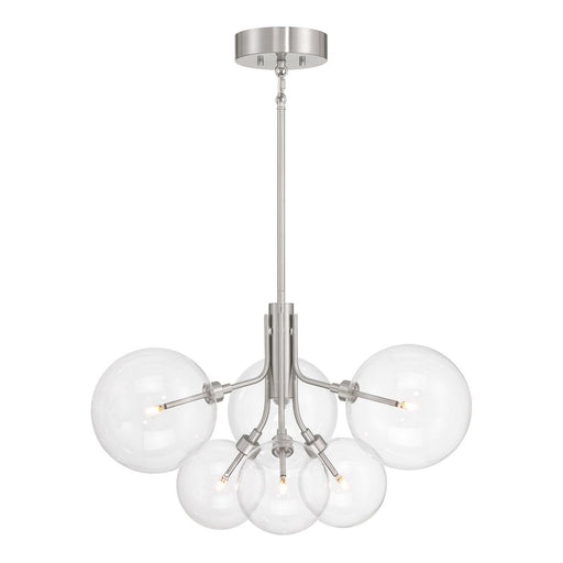This 6-light chandelier has an effervescent look with its bubbles of clear glass atop short, sleek arms finished in Brushed Nickel. Small yet might...