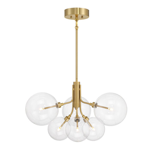 This 6-light chandelier has an effervescent look with its bubbles of clear glass atop short, sleek arms finished in Natural Brass. Small yet mighty...