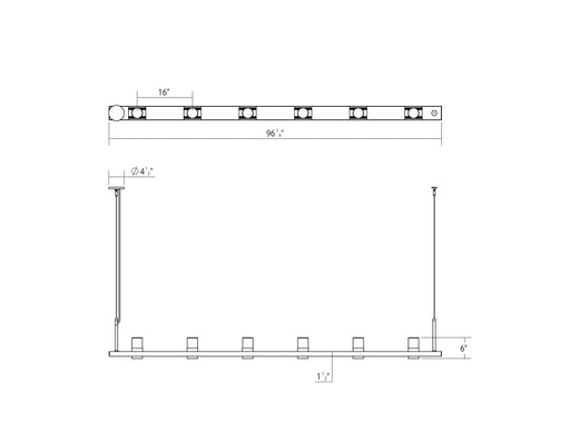 Details:Product Type: 4 Light +Finish: Satin BlackShade: Clear Etched GlassDesigner: SONNEMANMeasurements:Width / Dia: 96.25"Height: 11.50"Length: ...