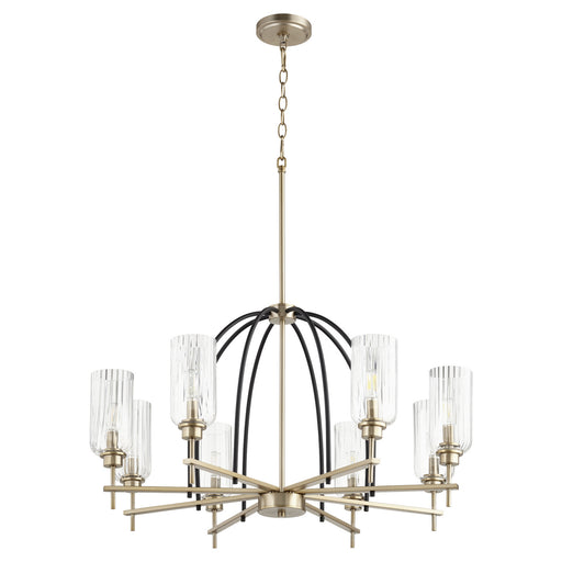 View full detailsQuorum 606-8-6980 Eight Light Chandelier, Textured Black w/ Aged Brass