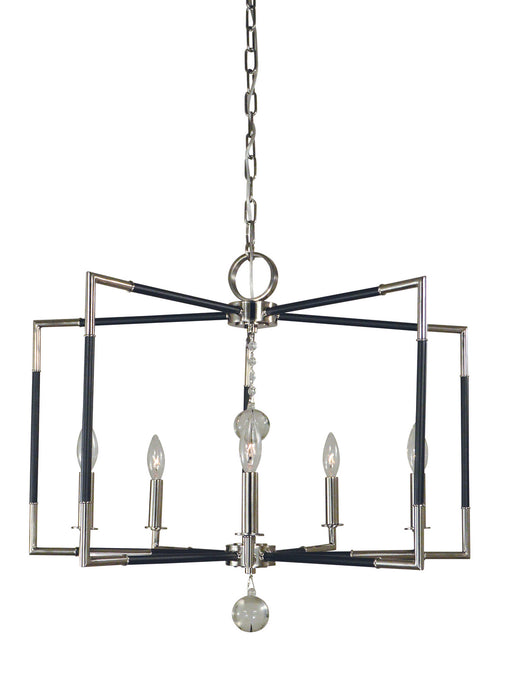View full detailsFramburg 5046 PN/MBLACK Five Light Chandelier, Polished Nickel w/Matte Black