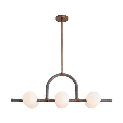 Minimalist and modern, the Harrison is a paradigm of linear lighting. Its lined silhouette presents six opal glass globes and is composed of herita...