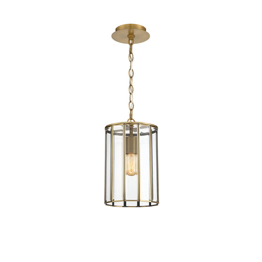 The brass cage frames clear glass panels for an unobstructed view of the vintage bulbs withinDetails:Finish: BrassShade: ClearMeasurements:Width / ...