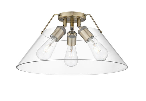 View full detailsGolden 3306-3FM AB-CLR Three Light Flush Mount, Aged Brass