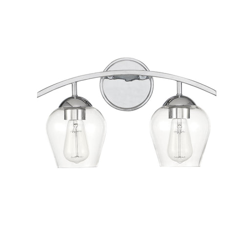 Shape up your bath lighting style with this 2-light bathroom vanity light! Between the curving arm, the wineglass-style clear glass shades and the ...