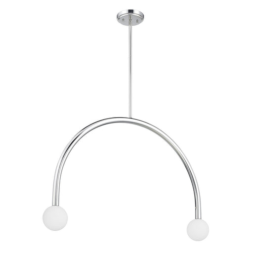 This perky, peppy 2-light chandelier has a curving style that makes a big impact! The light shines from inside orbs of white opal glass and the Chr...