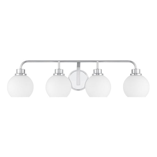 Freshen up your bathroom with the sleekly timeless style of this 4-light bath bar, which features orb-shaped shades of white opal glass that are op...