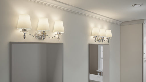 Add instant mystique and luxury above a bathroom vanity with the Gibson bath light. Clear beveled crystal shades create a dazzling play of shadow a...