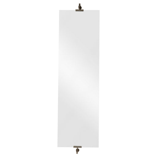 This all glass full-length leaner mirror finds inspiration in the industrial details of the Arts and Crafts movement. Metal clip hardware at the to...
