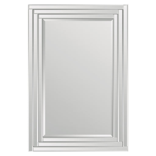 This contemporary design features a dimensional beveled-mirror "step" frame and a beveled center mirror. With its sleek look and clean lines this m...