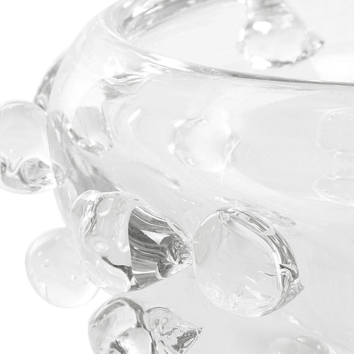 Enhance Your Home Decor With Our Thick Clear Glass Bowl, Adorned With Organic Glass Spheres Accenting The Surface. This Stunning Piece Combines Mod...