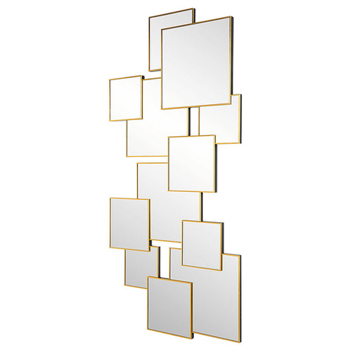 This Mirror Features Overlapping Squares Encased In Brass Plated Channeling That Create A Modern Yet Elegant Feel. May Be Hung Horizontal Or Vertic...
