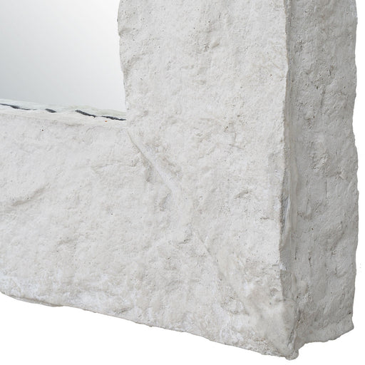 The Everett Mirror Features A Man-made Stone Veneer, Characterized By A Heavily Textured Surface, Finished In A Rich Aged Ivory. Mirror Has A Gener...