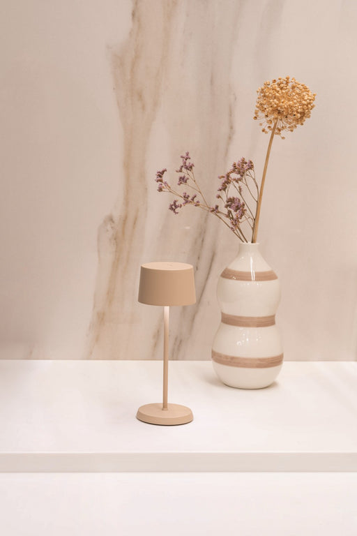 Olivia micro is a rechargeable battery-powered cordless table lamp. Touch control on/off, dimming, and color temperature selection 3 color temperat...