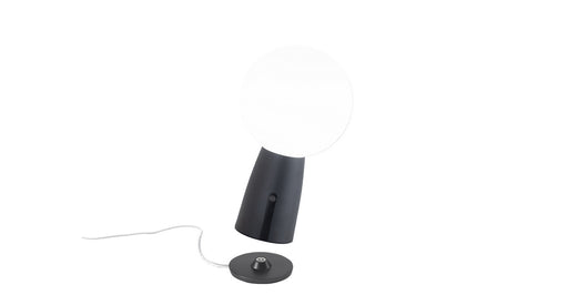 Battery-operated and rechargeable portable table lamp. The lamp features a white glass globe and has dimming touch control with 3000k (cool white)....