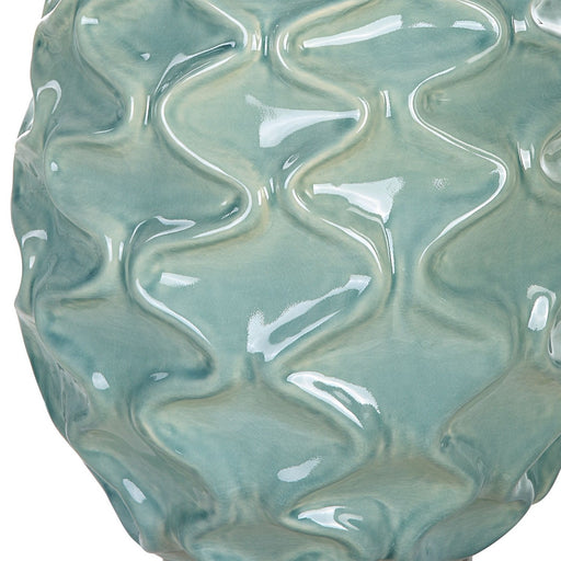 The Laced Up Table Lamp Is Handcrafted From Ceramic With Unique Raised Ribbon Details In A Sea Foam Gloss Glaze Atop A Thick Crystal Foot Paired Wi...