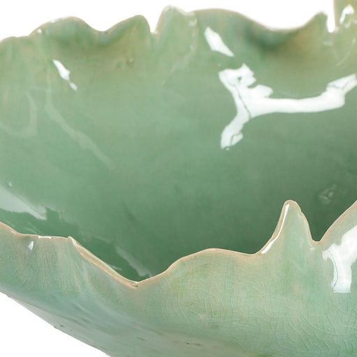 This Elegant Ceramic Bowl Features A Stunning Ruffled Edge Design, Evoking The Delicate Shape Of A Blooming Flower. Its Soft Green Glaze With A Sub...