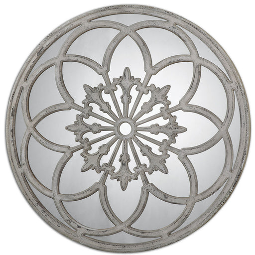 Ornate, Heavily Distressed, Aged Ivory Finish With Rust Bronze Undertones.Details:Product Type: Mirrors-Oval/Rd.Finish: Aged WhiteMeasurements:Widt...