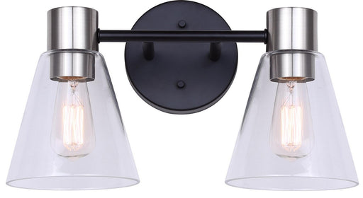 The DAVINA IVL1127A02BKN is a two-light vanity fixture blending matte black and brushed nickel. With clear glass shades, it supports 60W Type A bul...