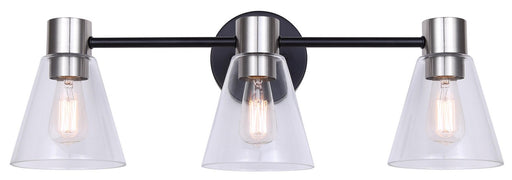 The DAVINA IVL1127A03BKN is a three-light vanity fixture featuring a striking combination of matte black and brushed nickel. With clear glass shade...